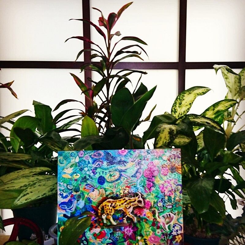 アクリル絵の具はアクリル製品にくっついてしまいますので額装する際にはアクリル板に密着させないようご注意ください。作品の上などに紙、プラスチック製品を長時間密着すると、くっついてしまい破損の原因となります