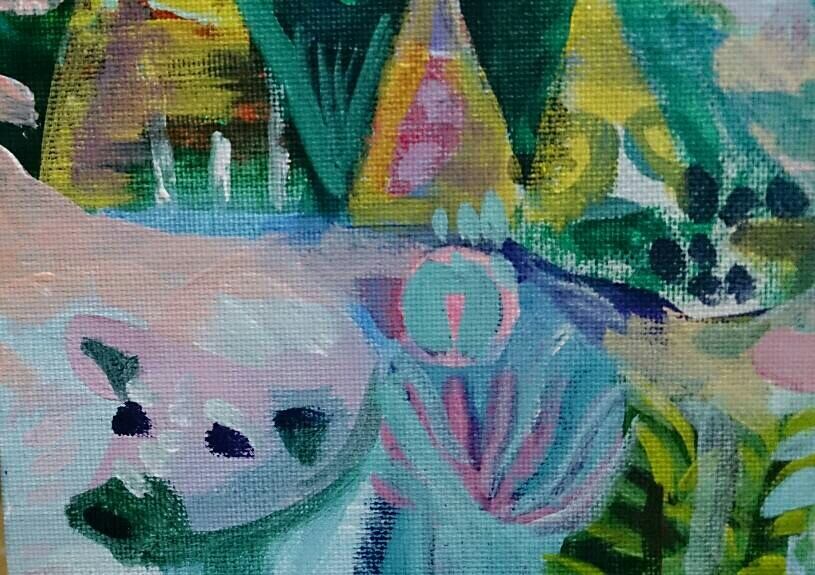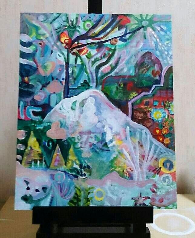 キャンバスボード(フナオカキャンバス)、ジェッソ(ホルベイン)、アクリル絵の具(リキテックス、ホルベイン)、半つや仕上げ用保護ニス(リキテックス)